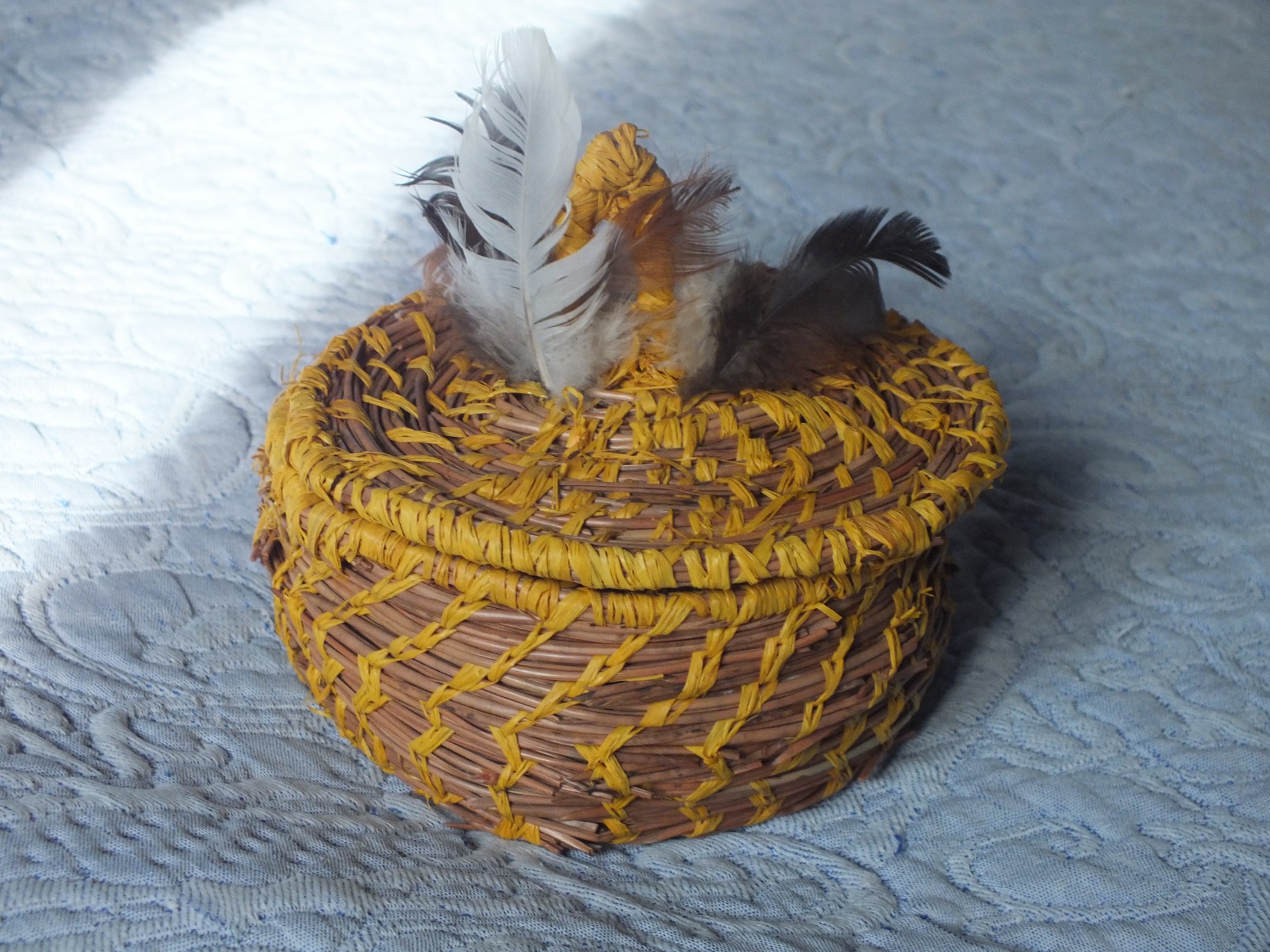 Corbeille aiguilles de pin bordée de feuilles de sauge